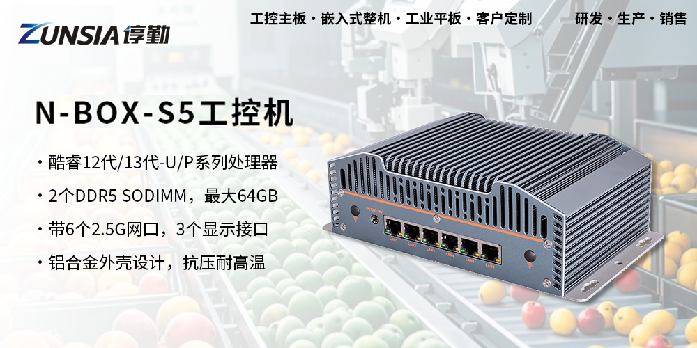諄勤智能的這款N-BOX-S5工控機就非常適合在自動分揀領域上使用,板載Intel酷睿12代/13代-U/P系列處理器,帶有2個DDR5 SO-DIMM內存槽,最大支持64GB;性能強悍的同時保證其長時間穩定高效運行!